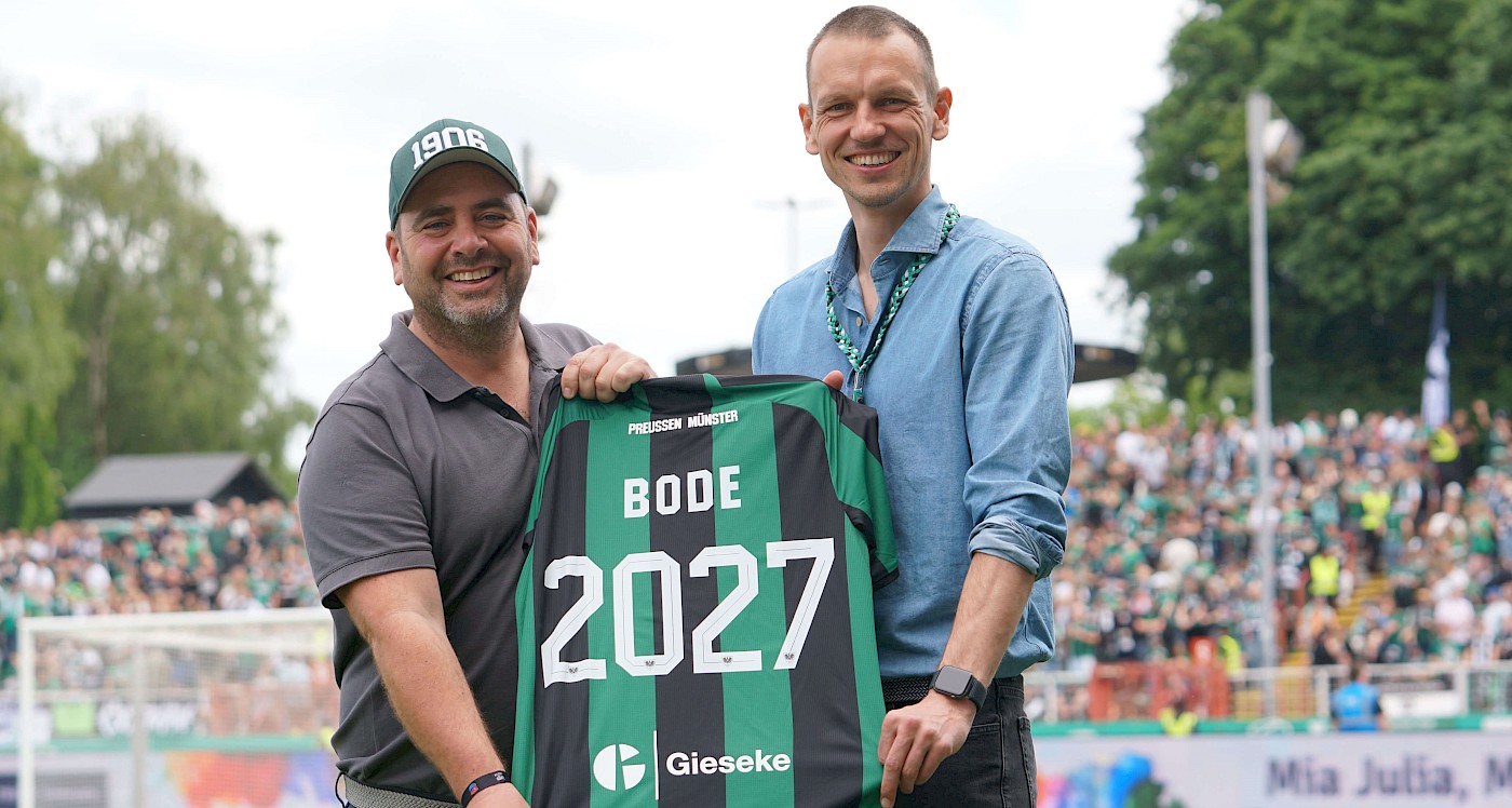 Bereits 2020, nach dem Aufstieg des SC Preußen Münster in die Regionalliga, war die BODE Unternehmensgruppe der erste offizielle Hosenpartner des Fußballclubs. Die enge Partnerschaft überstand bereits drei Ligen und dauert weiterhin an. Wir als Exklusivpartner sind stolz auf die BODE-Loge im LVM-Preußenstadion, die unabhängig von der Ligazugehörigkeit bis 2027 Bestand hat. Für uns ist es mehr als ein klassisches Sponsoring, denn unser Geschäftsführer lebt für den Verein.