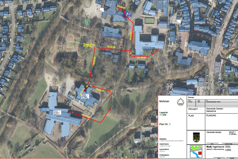 Die Gemeinde Senden hatte den Bedarf, vier Schulen mit einer regenerativen Wärmeversorgung auszustatten. Diese Schulen befinden sich in unmittelbarer räumlicher Nähe zueinander und wurden bisher durch fossile Erdgas-Heizungsanlagen beheizt. Im Rahmen einer Machbarkeitsstudie wurde untersucht, wie eine gemeinsame Lösung für eine zukunftsweisende Wärmeversorgung aussehen könnte. Als Ergebnis wurde ein Gebäudeverbund mit einer gemeinsamen Heizzentrale erarbeitet. Diese sollte mit regenerativer Wärme auf der Basis von Holzhackschnitzeln betrieben werden. Die Machbarkeitsstudie wurde im Rahmen des INTERREG-V-Projektes "Wärme in der Euregio - fokussieren und modernisieren" (WiEfm) gefördert.